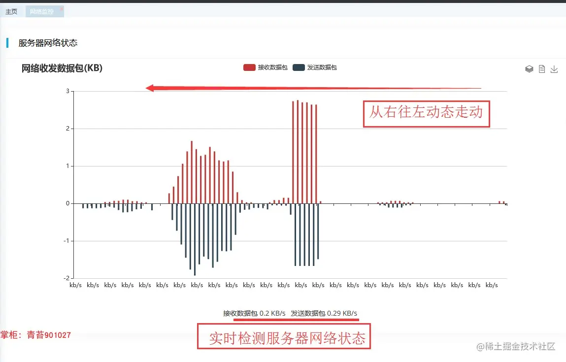 11.网络监控:实时监控服务器网络接收数据包速度,动态图表展示