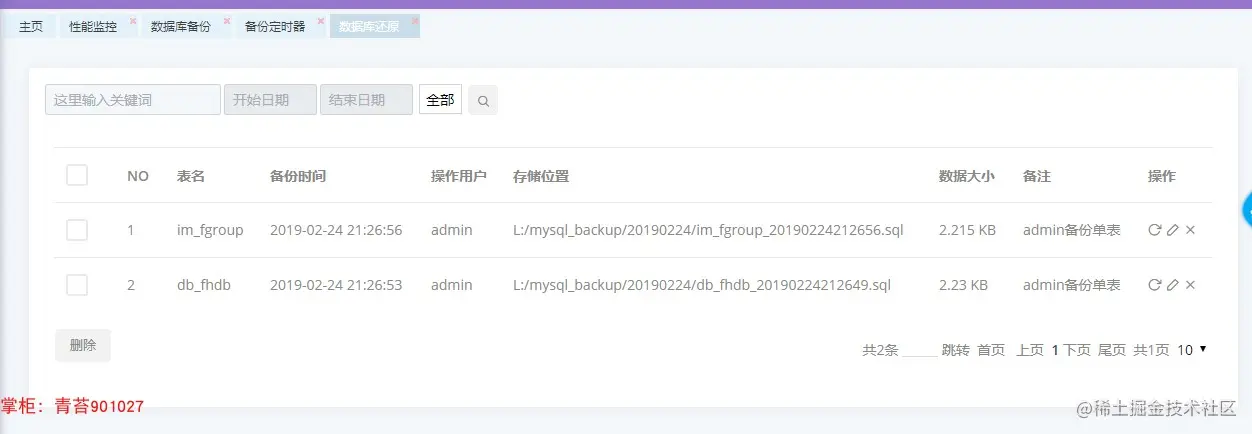 21. 数据库还原:历史备份记录,还原数据库 or 单表(sqlserver不支持),统计备份时间和文件大小