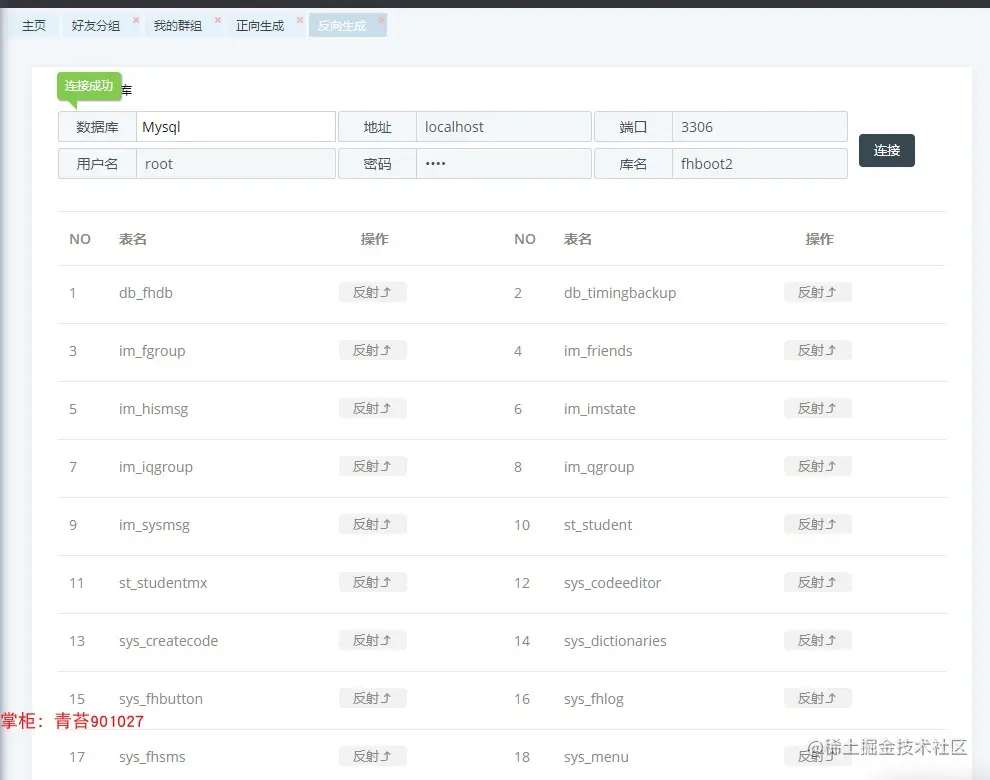 反向生成: 任意连接其它数据库(mysql、oracle、sqlserver),根据表反射生成本系统的模块