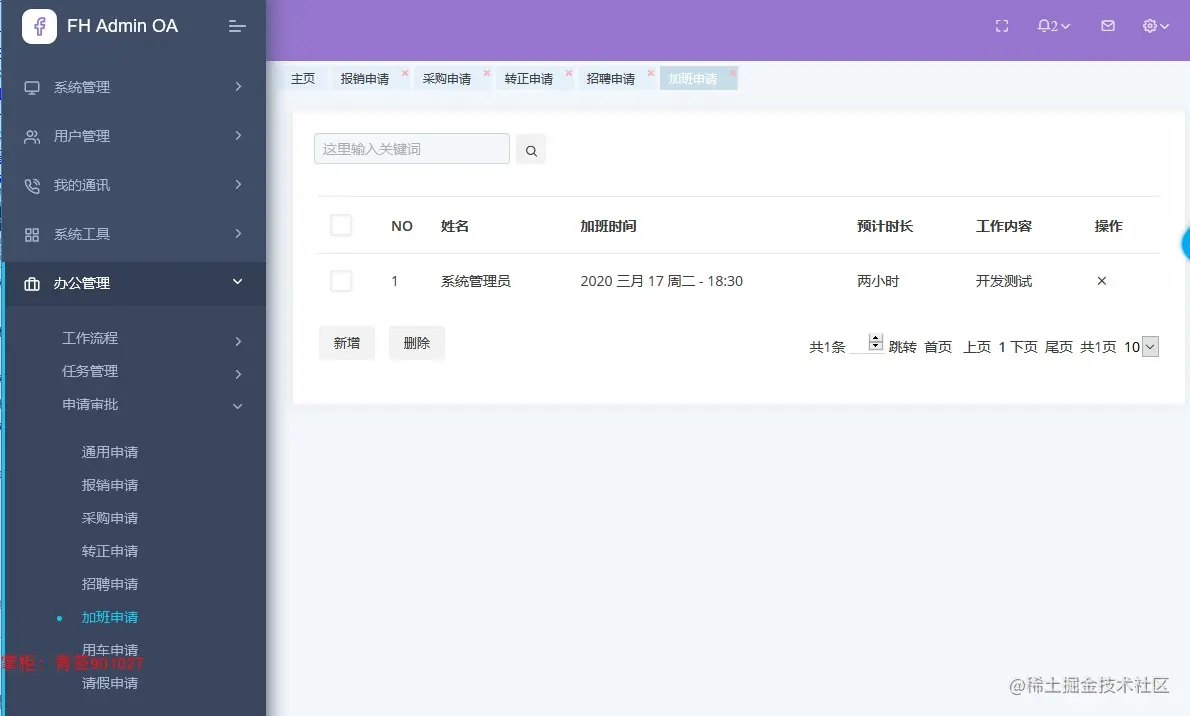 28. 加班申请:添加加班单,走工作流加班模型流程