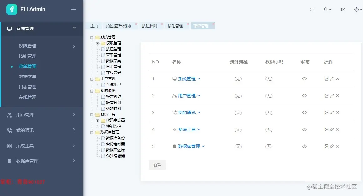 1. 权限管理:点开二级菜单进入三级菜单显示 角色(基础权限)和按钮权限