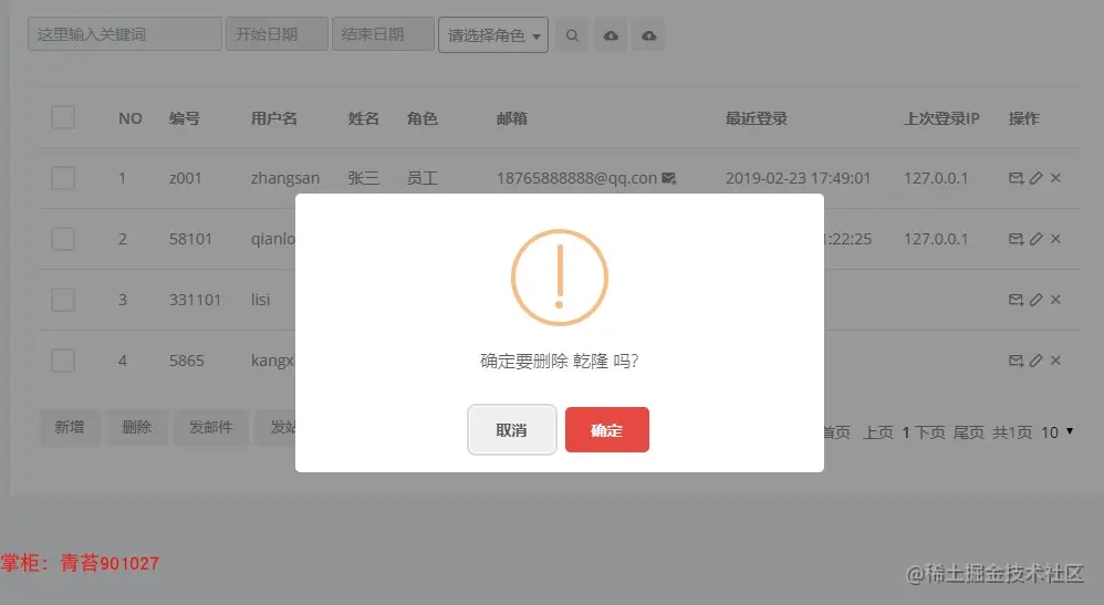 7. 系统用户:对各个基本的用户增删改查,导出到excel表格,批量删除