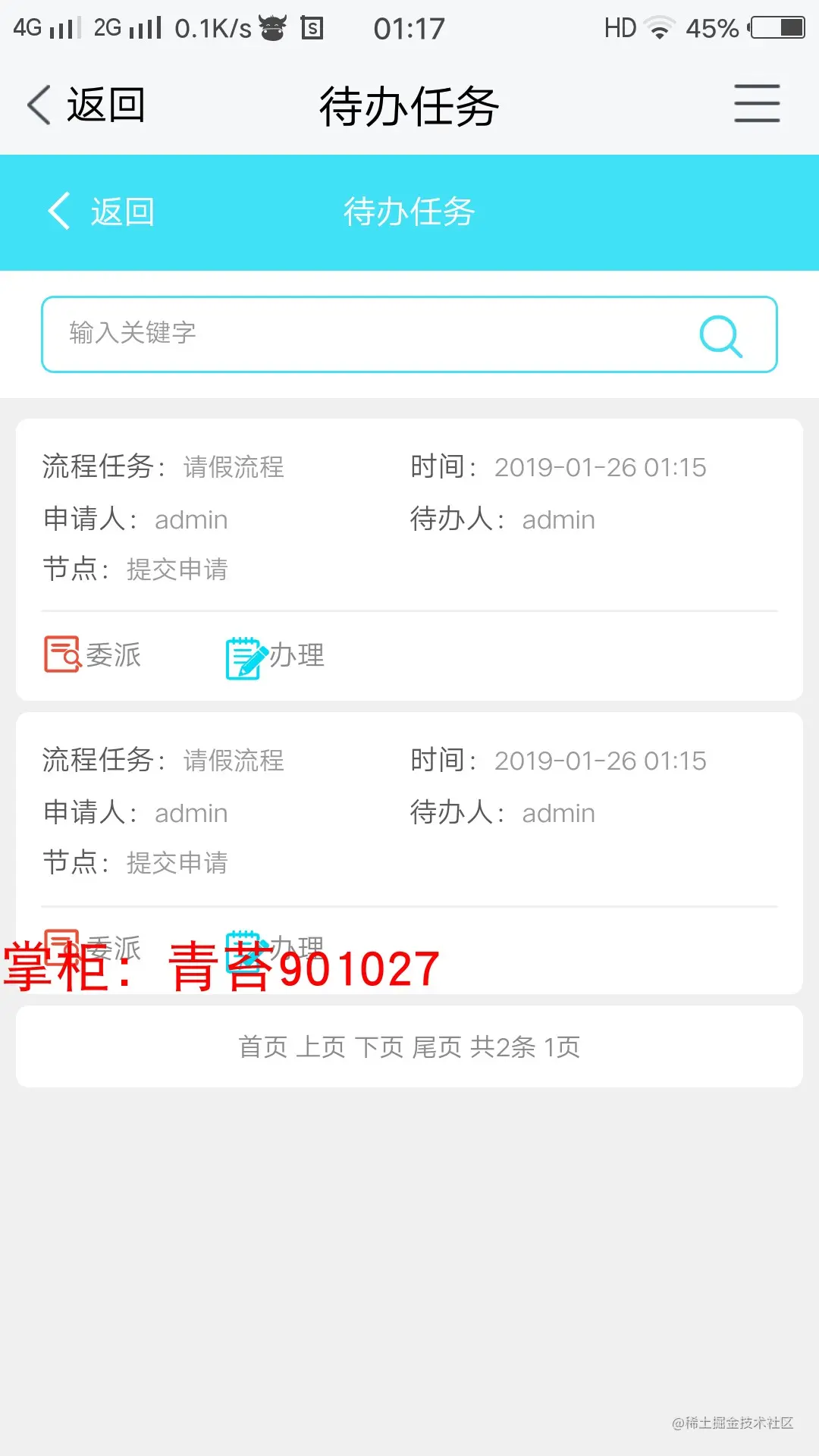 5.待办任务 :查看本人个人任务以及本角色下的任务、办理、驳回、作废、指派一下代理人