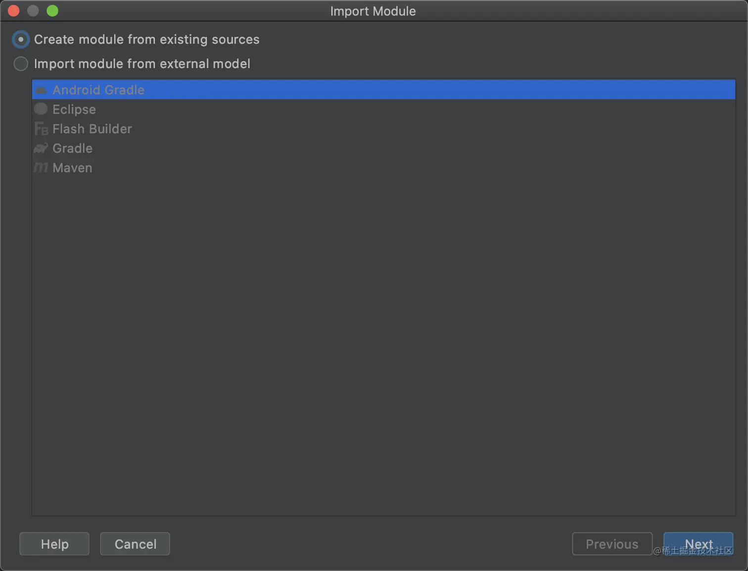 Import Module:如果你要管理的项目已经从git上拉下来了,可以直接用这个选项进行导入即可: