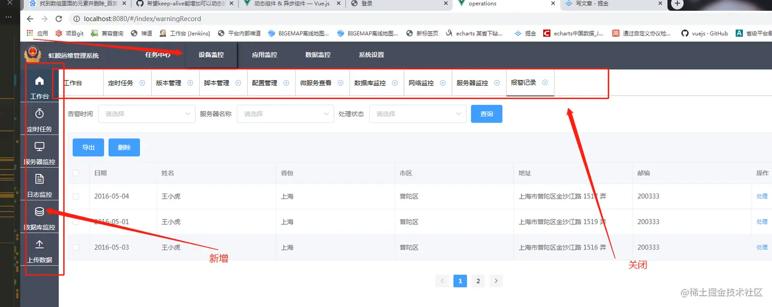 点击就算页签我点了关闭,页面也还在缓存中.... 就是我再点新增页面还保留这上次的操作,这就很难受了。之后上网问了同事他们给的方案是keep-alive的include和exinclude属性,研究了好久... 才知道它的include属性接受竟然是一个数组,老娘一直以为他是个字符串单个的,那接受个数组就好弄啦.. 我点击关闭页签的时候数组里面remove掉....就只是对数组的增删...但是不知道会不会有问题... 看到网上很多方案都是用的vuex 我还真没用到 可能我配置的router不一样吧