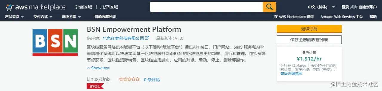 AWS Marketplace中的BSN赋能平台