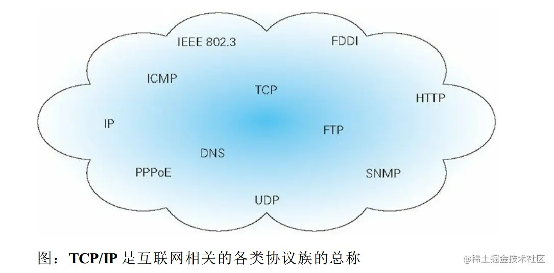 TCP/IP 把与互联网相关联的协议集合起来总称为 TCP/IP。