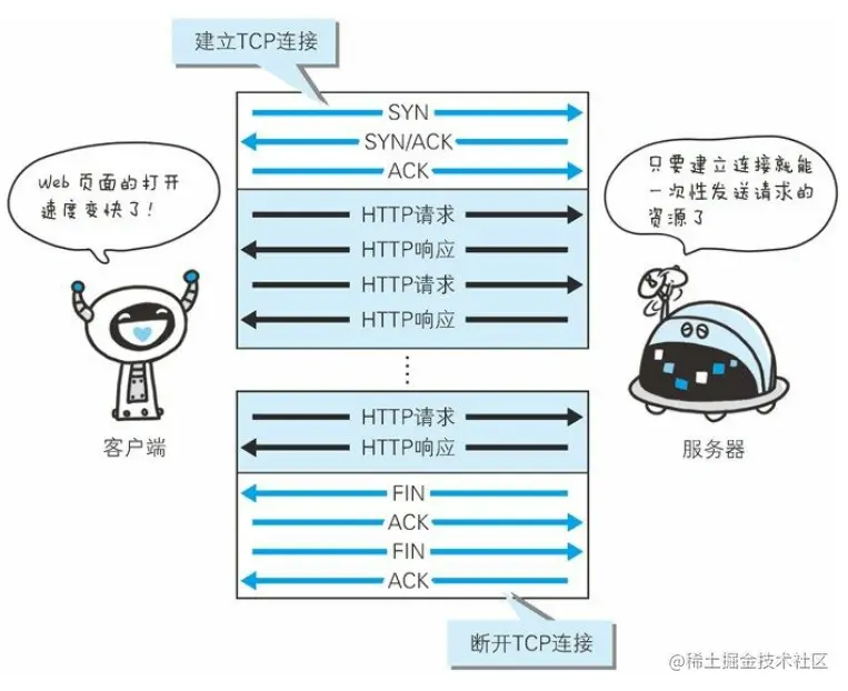- 持久连接节约通信量:旨在建立 1 次 TCP 连接后进行多次请求和响应的交互