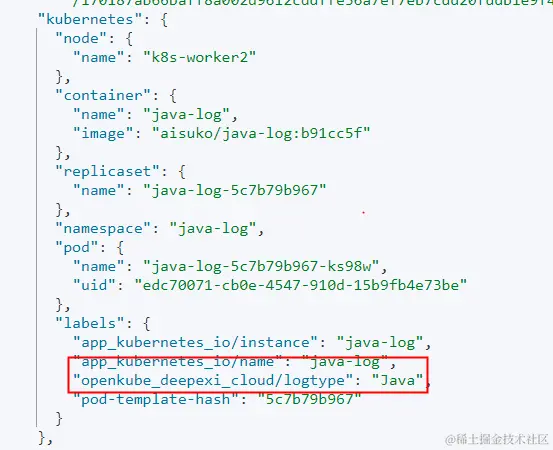(1)为便于日志数据分类清洗、过滤、存储应用服务时要对服务打上标签,标识应用的日志类型,标签key:openkube.deepexi.cloud/logtype