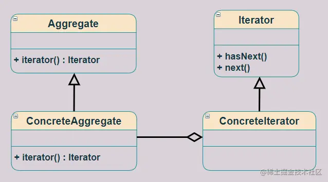 我们平时用的溜溜的,但是具体内部实现你是否有所了解,我们老样子来看下迭代器模式中的 UML 图 和 角色: