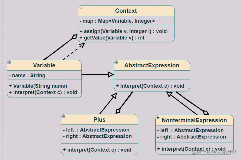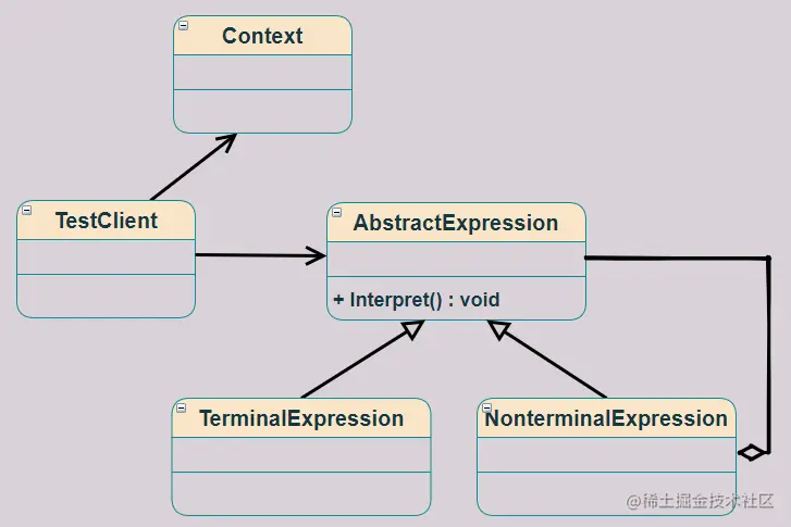 然后我们来看下解释器模式的 UML 图: