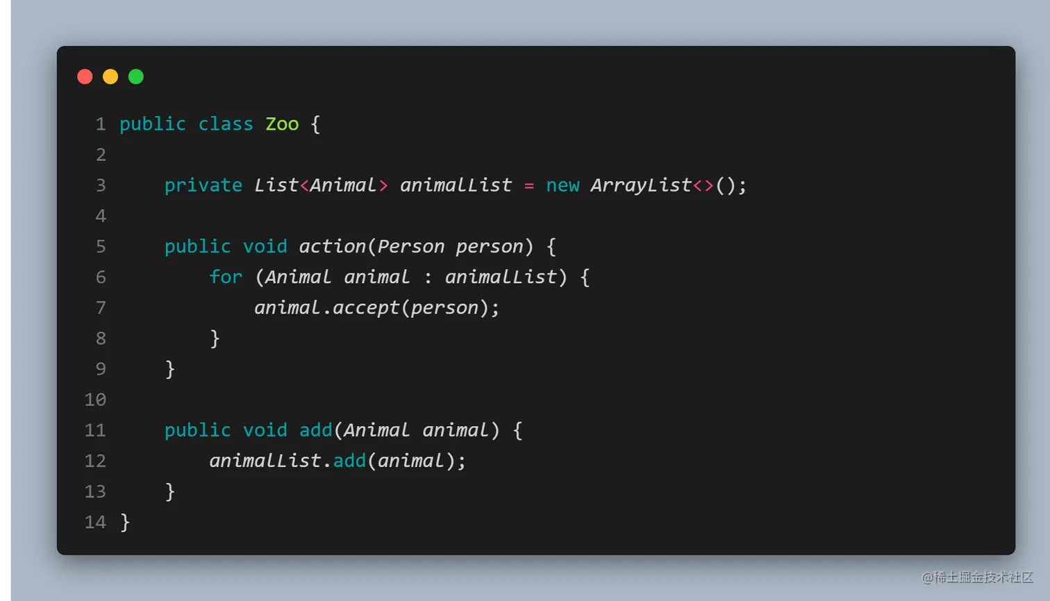 - 具体访问者角色: 饲养员、游客