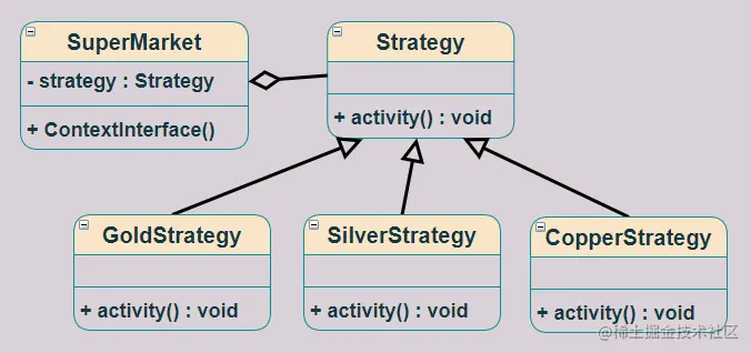 某大型商场开展周年庆活动,根据商家的不同等级(金牌会员,银牌会员,铜牌会员)做出不同的活动策略,活动 UML 图如下: