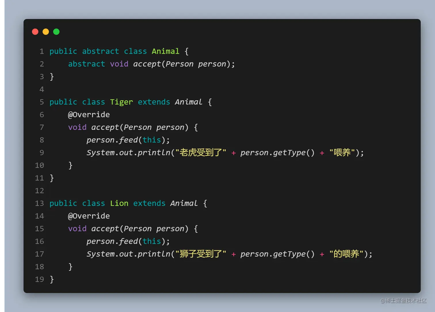 - 抽象访问者角色:喂养者