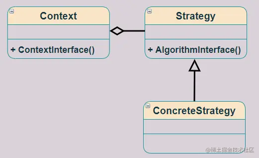 上下文(Context)类: 持有一个策略类的引用,最终给客户端调用