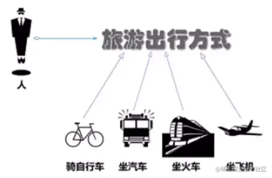 生活中策略模式随处可见,出行方式的选择: