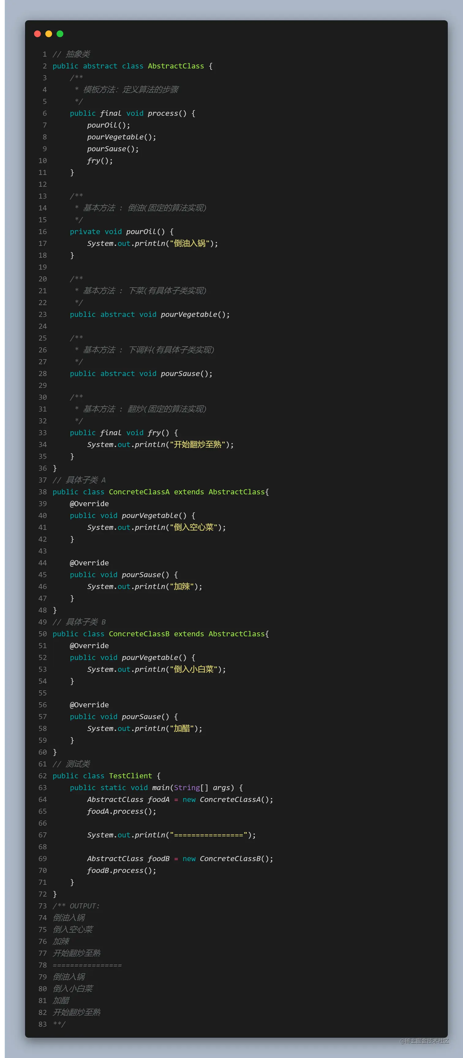 接下来我们用个简单的例子来了解一下 模板方法模式 的使用方法: