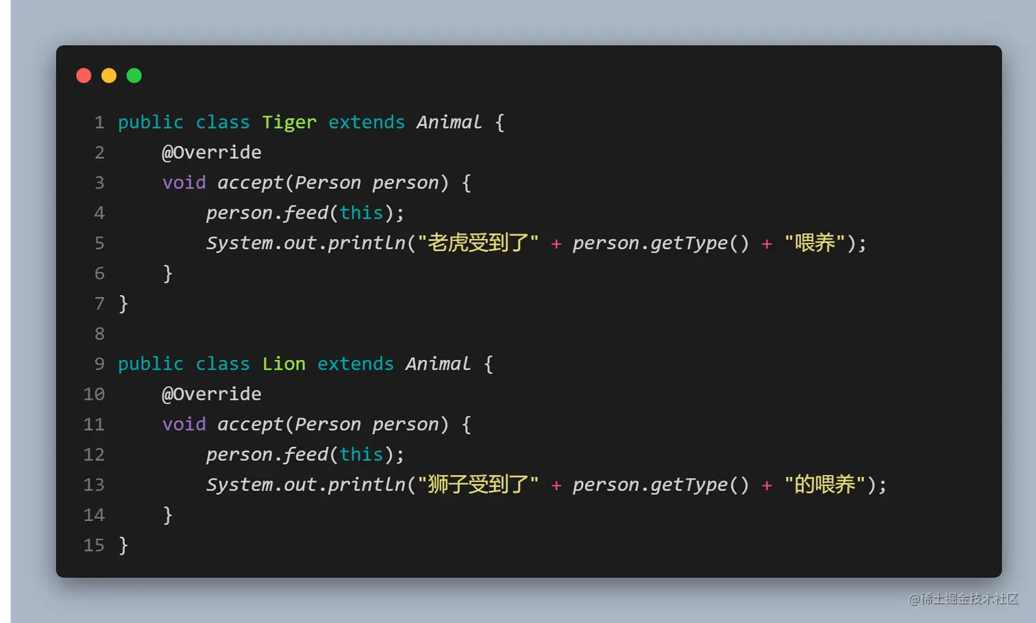 - 具体元素角色: 老虎,狮子