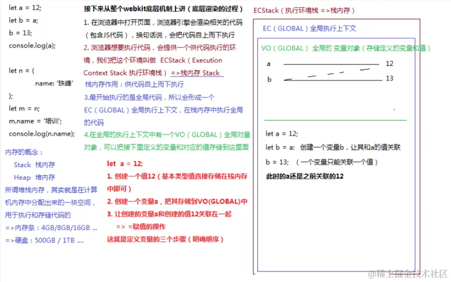 从电脑内存中分配除一块内存,用来执行代码(栈内存=> Stack)