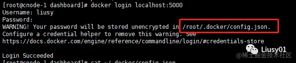 输入用户名和密码,如果是第一次登陆,则会创建用户,相关信息会被写入~/.docker/config.json文件中