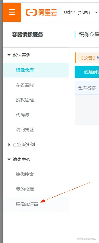 3.在镜像中心选择镜像加速器