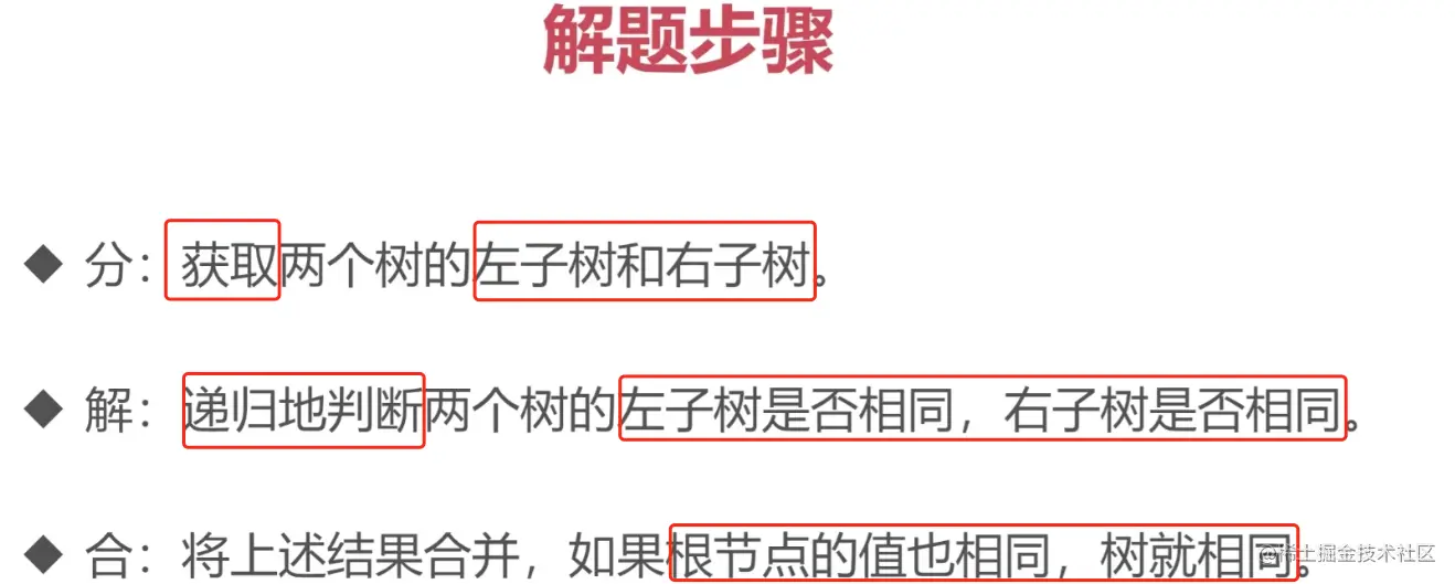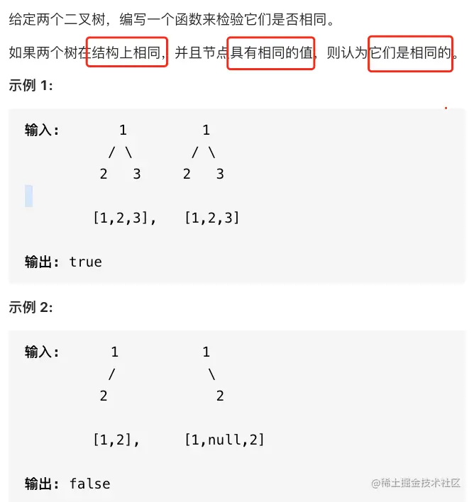 // 根节点相同 左子树相同 右子树相同 返回 true 否则返回 false