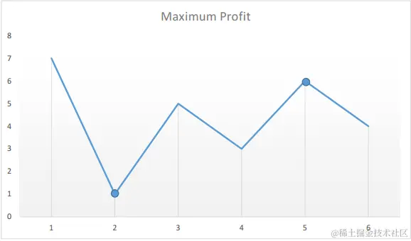 假设给定的数组为:[7, 1, 5, 3, 6, 4]