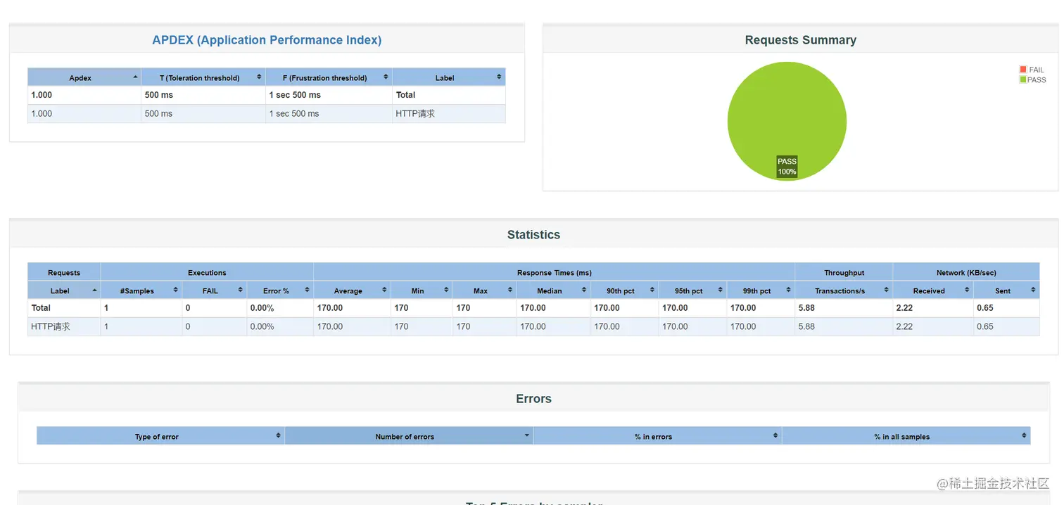 一般情况下,我们可以根据-o这个参数在Linux中生成对应的聚合报告,根据聚合报告我们可以分析压测的结果