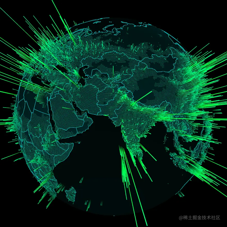 Three.js本身并不支持GIS相关API,使用Three.js实现地球相关可视化的时候,经纬度转球面坐标需要自己实现,每个国家的球面Mesh同样也是需要自己实现。