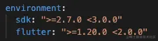 如图是:sdk代表的是dart sdk的版本控制范围。 flutter代表的是flutter sdk的版本控制范围。下边的依赖项的dart和flutter的版本也是受限于此处的。