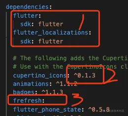 标1的位置:此处的sdk:flutter代表的是,依赖项flutter或者flutter_localizations是一定存在于你安装的flutter sdk中的,而且依赖项的也是受限于flutter sdk版本的。如果依赖项不存在与flutter sdk中,会在 更新依赖的时候报错。如下: