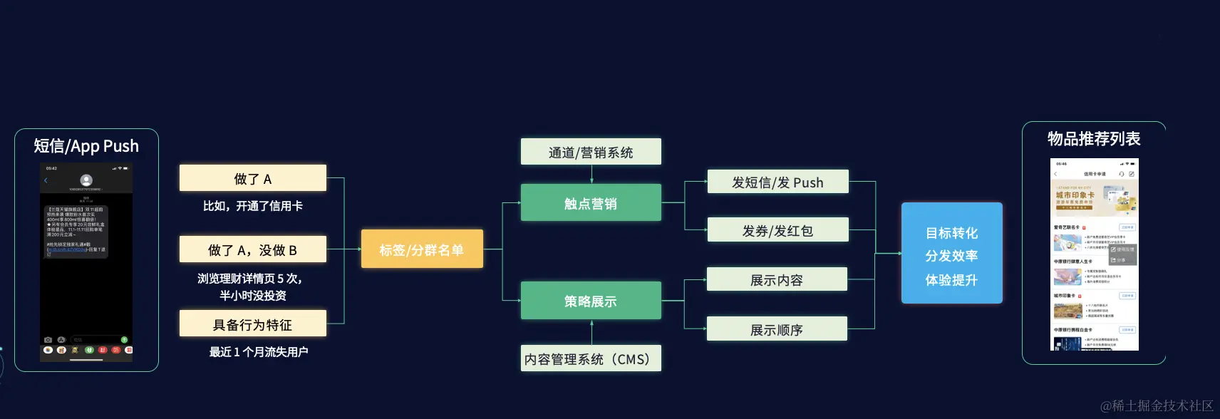 在此阶段,我们梳理出触点营销和精细化分层推荐两个场景。