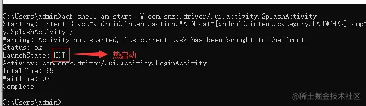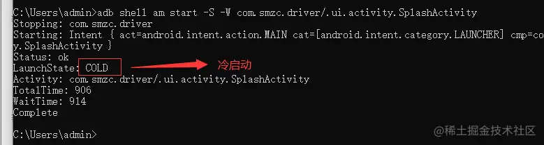 adb shell am start -S -W com.smzc.driver/.ui.activity.SplashActivity
