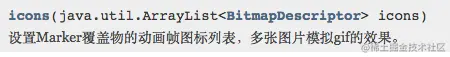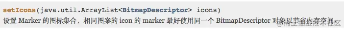 请注意Marker还有一个 setIcon方法,与setIcons是有区别的。