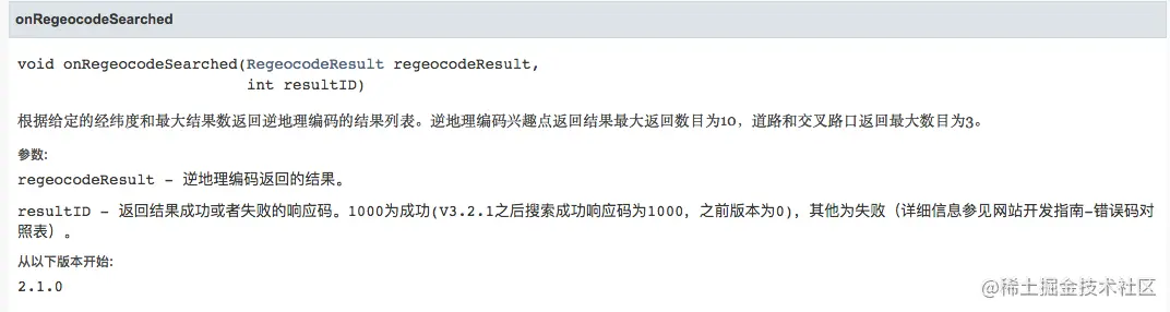 大家可以看到返回的onRegeocodeSearched方法的变量RegeocodeResult regeocodeResult