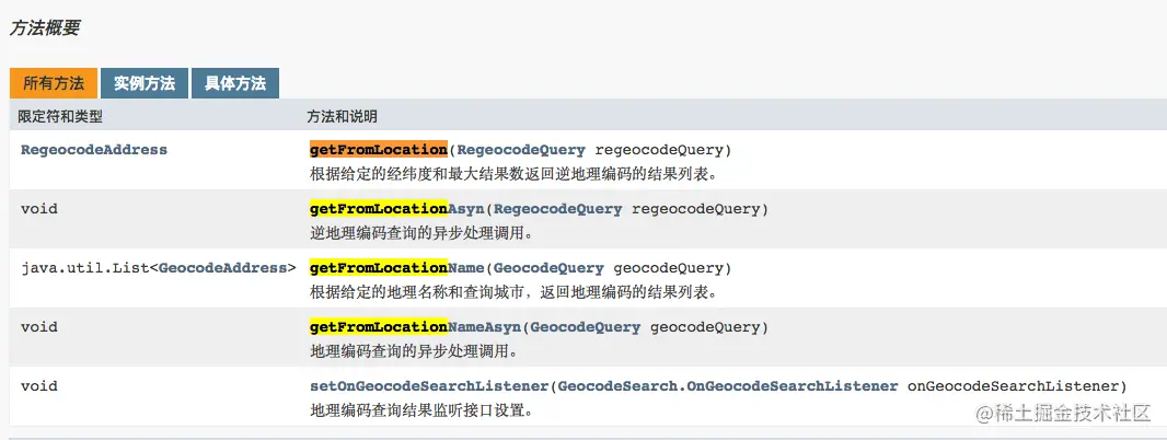 GeocodeSearch 地理编码与逆地理编码类。