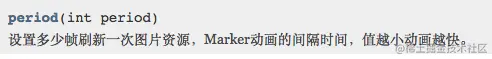 // 设置多少帧刷新一次图片资源,Marker动画的间隔时间,值越小动画越快。默认为20,最小为1。