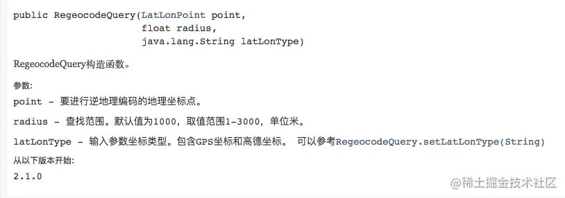 此类定义了逆地理编码查询的地理坐标点、查询范围、坐标类型。