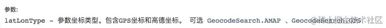 //latLonType - 输入参数坐标类型。包含GPS坐标和高德坐标。 GeocodeSearch.AMAP 、GeocodeSearch.GPS