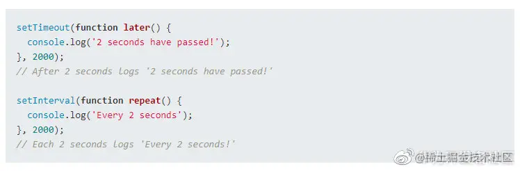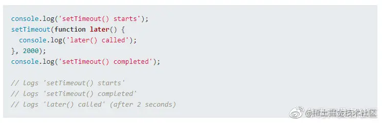 later() 是一个异步回调,因为 setTimeout(later``,``2000) 启动并完成了执行,但是 later() 在 2 秒后执行。
