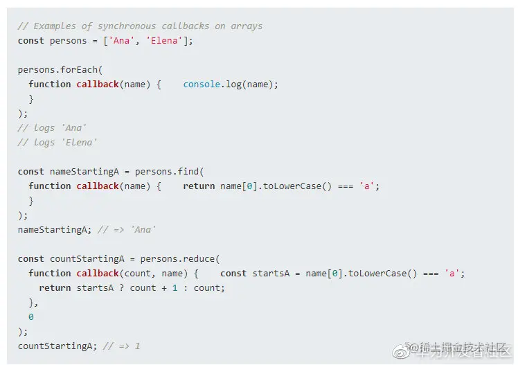 许多原生 JavaScript 类型的方法都使用同步回调。