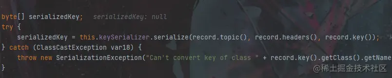 同理传入的topic、header、value将被序列化得到一个byte数组serializedValue,后续会用到