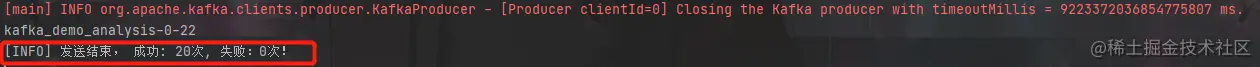 System.out.println("[INFO] 发送结束, 成功: " + success + "次, 失败:" + fail + "次!");