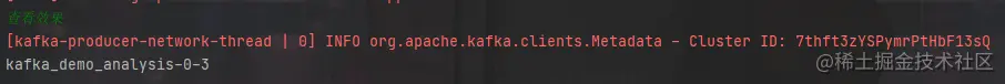 运行broker、producer、consumer,观察效果。先看打印日志,可以看到已经使用了指定的拦截器