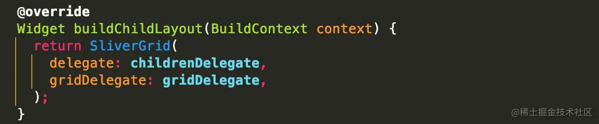 可以看到,ListView的buildSlivers方法最终返回了包含SliverFixedExtentList或者SliverList的list,而GridView的buildSlivers方法最终返回的是包含SliverGrid的list。