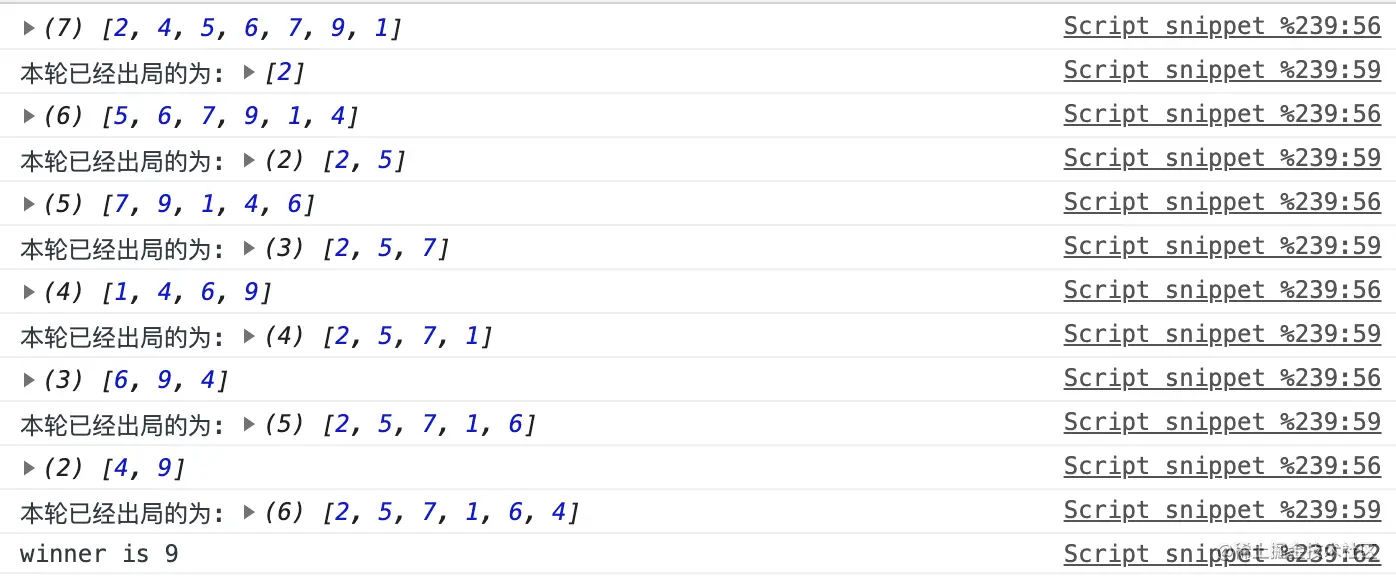 console.log('本轮已经出局的为:',out);