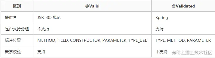 @Valid和@Validated区别