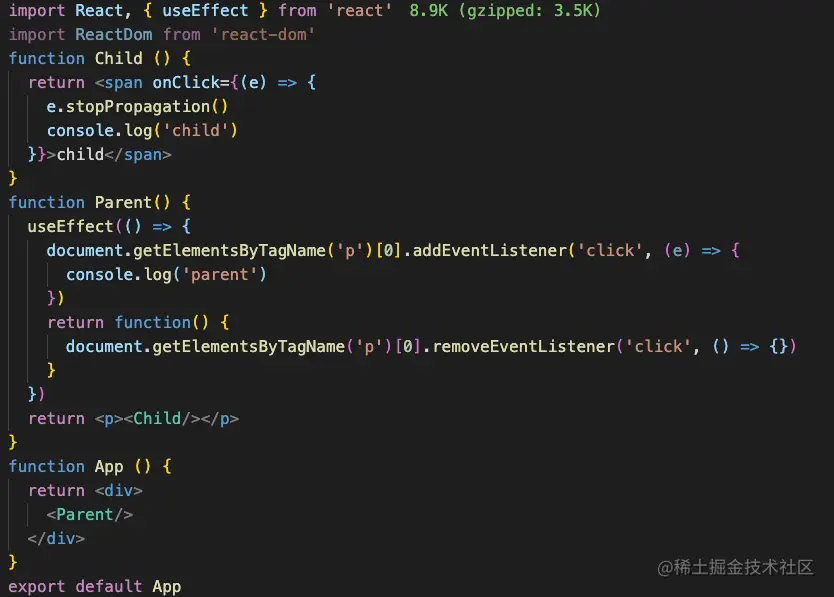 - 也可以将事件通过委托的方式注册到根节点,通过stopImmediatePropagation阻止事件传播,前提是事件监听在组件渲染完成后