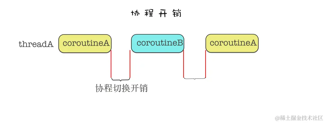 协程运行在线程之上,协程执行完成后,可以选择主动让出,让另一个协程运行在当前线程之上。即协程并没有增加线程的数量,而是在线程的基础上通过分时复用的方式运行多个协程,还有关键一点是它的切换发生在用户态,所有也不存在用户态到内核态的切换,代价更低