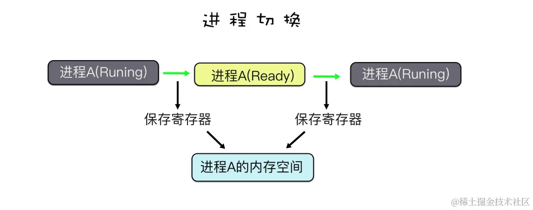 操作系统的大量进程需要来回的切换,保持有借有还再借不难的传统美德,每次切换之前需要先记录下当前寄存器值的内存地址,方便下次回到原位置继续执行。恢复执行的时候就从内存中读取,然后恢复状态执行即可